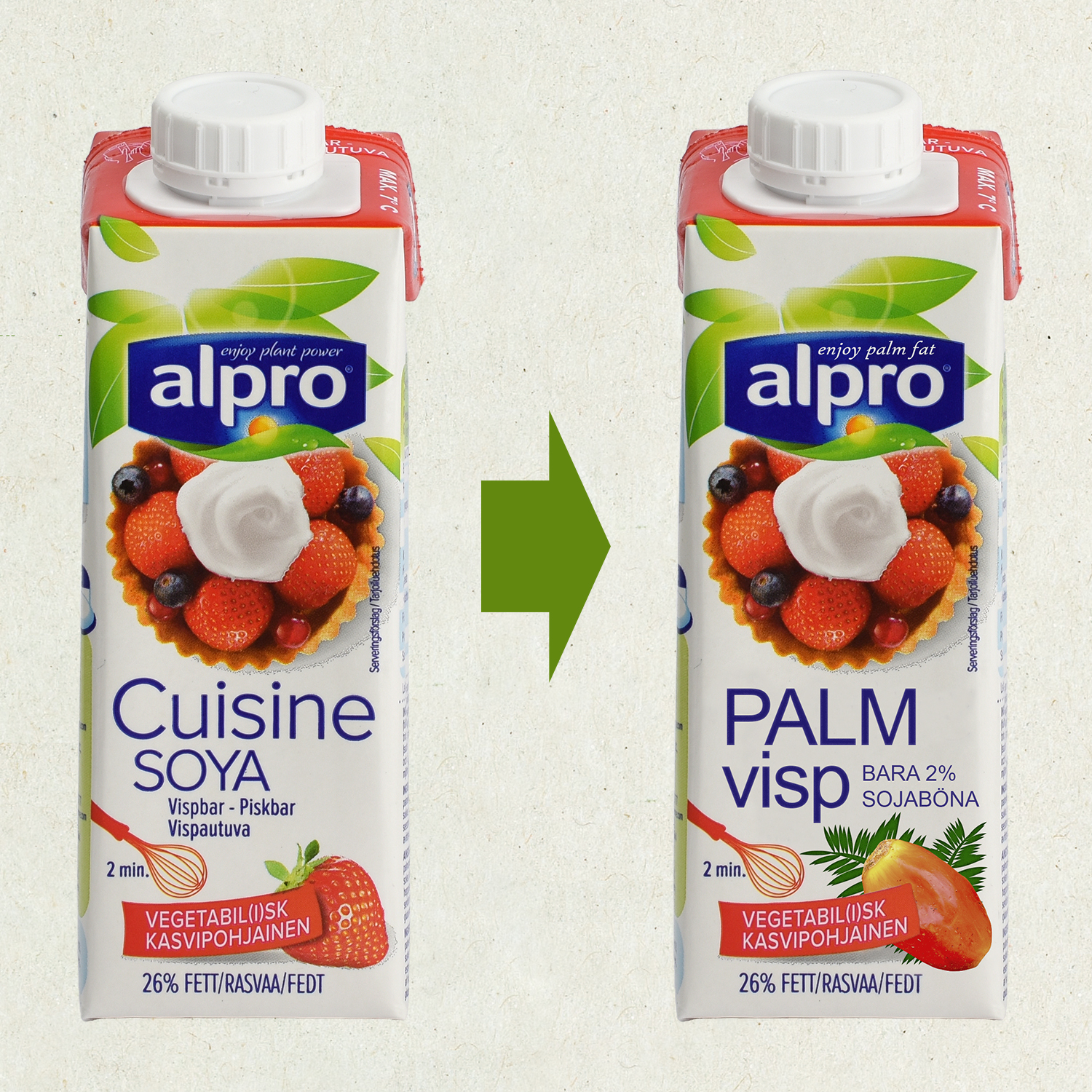 Trots att det vegetabiliska gräddalternativet har soja i namnet innehåller den endast två procent av denna råvara.